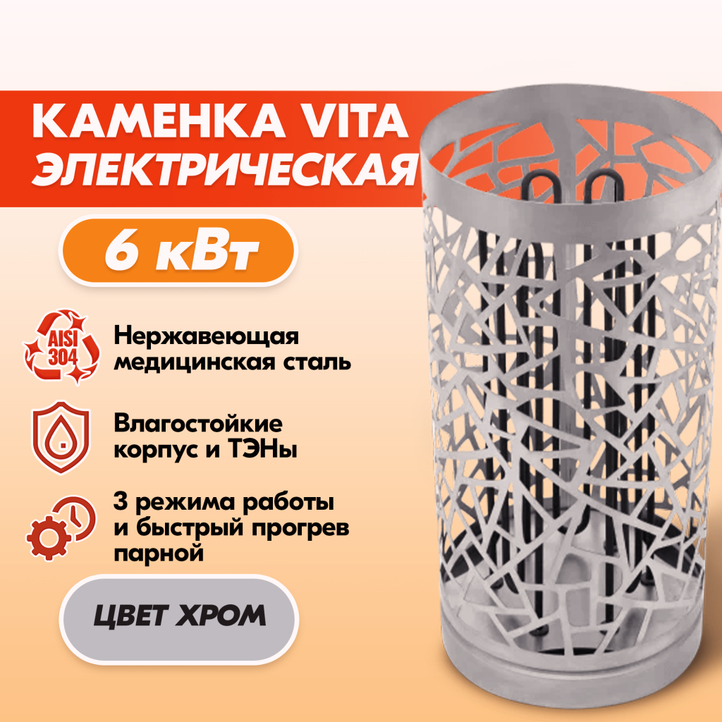 Электрокаменка VITA 6 кВт нерж. в Ангарске | Доставка по России