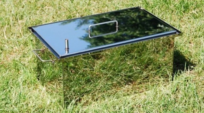 Коптильня изготовлена из нержавеющей стали толщиной 1мм. Имеет 2 уровня для продуктов, поддон для сбора жира и так называемый «гидрозатвор» в верхней части благодаря этому, создается давление и копчение происходит более быстро и качественно.