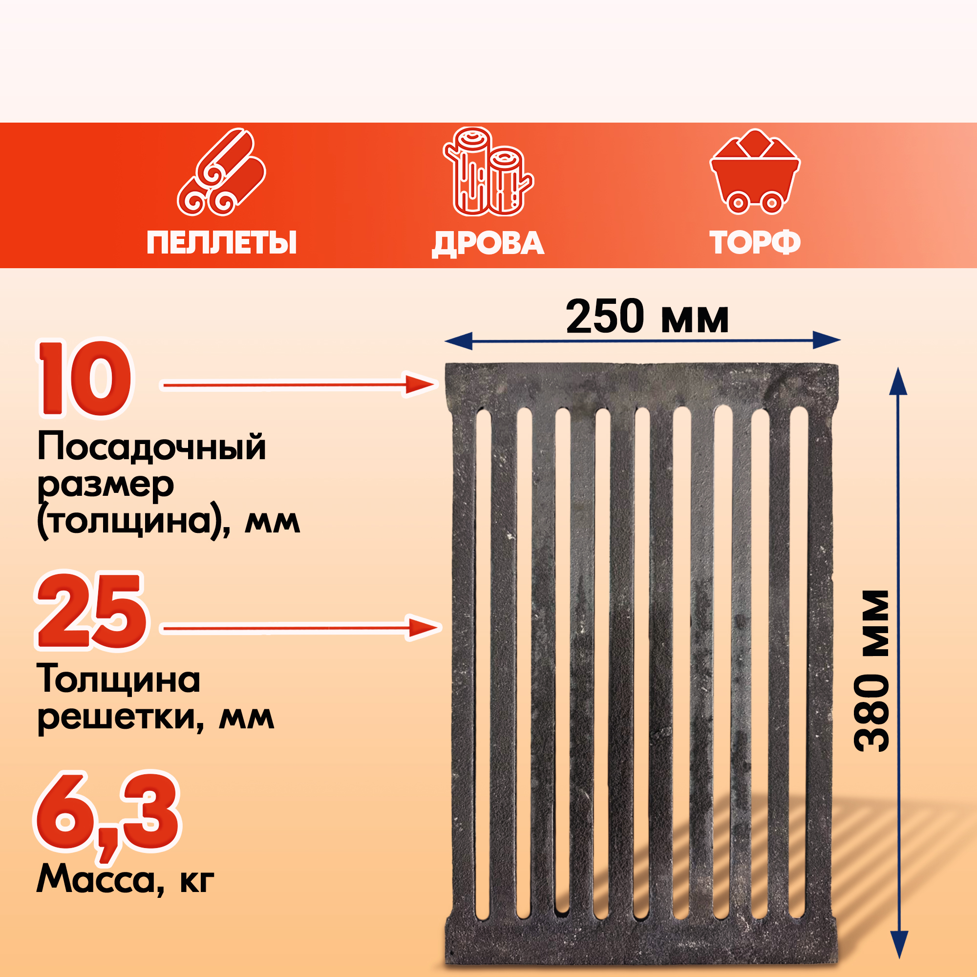 Решетка колосниковая РД-6 (380х250) для печи, правильные колосники для котлов
